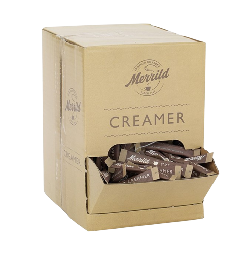 Merrild branded Creamersticks i 2,5 g portionsstørrelser.